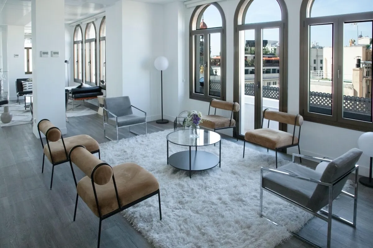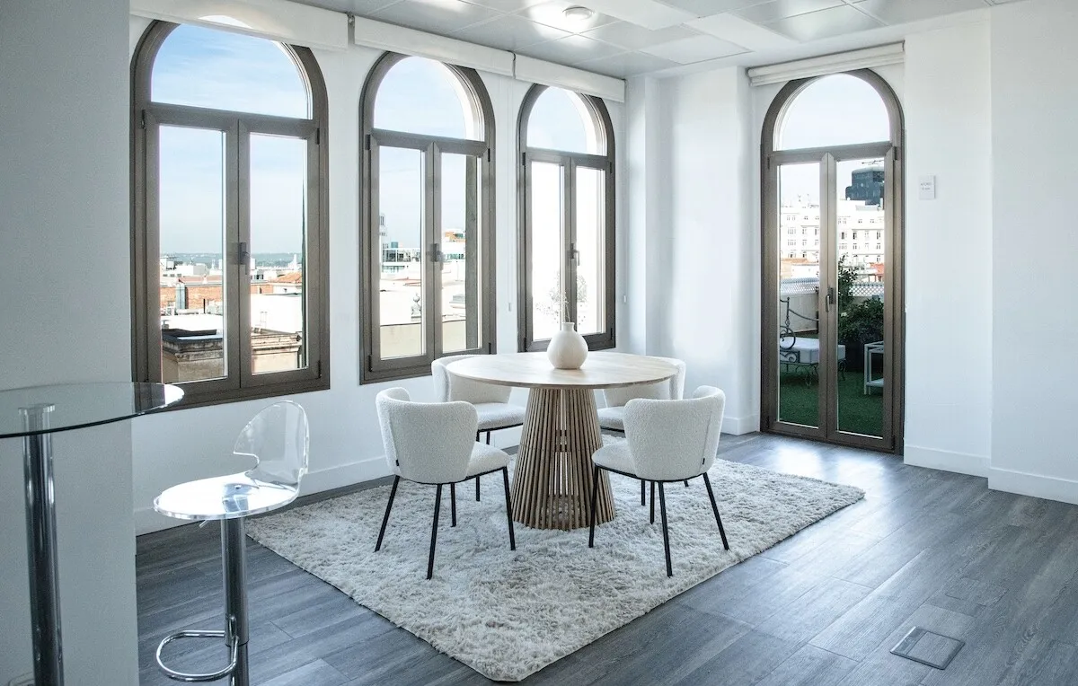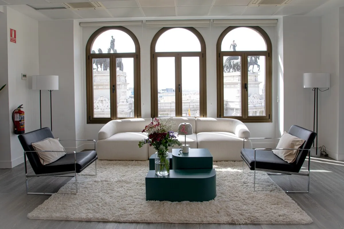 El ambiente de Loop21 es una fusión perfecta entre tradición y modernidad. Mientras el exterior conserva el encanto clásico de la arquitectura madrileña, el interior se renueva con materiales modernos y amplios ventanales que permiten que la luz natural inunde el espacio. Esta dualidad crea un entorno sofisticado y dinámico, ideal para eventos corporativos, presentaciones, lanzamientos, producciones culturales y celebraciones privadas.