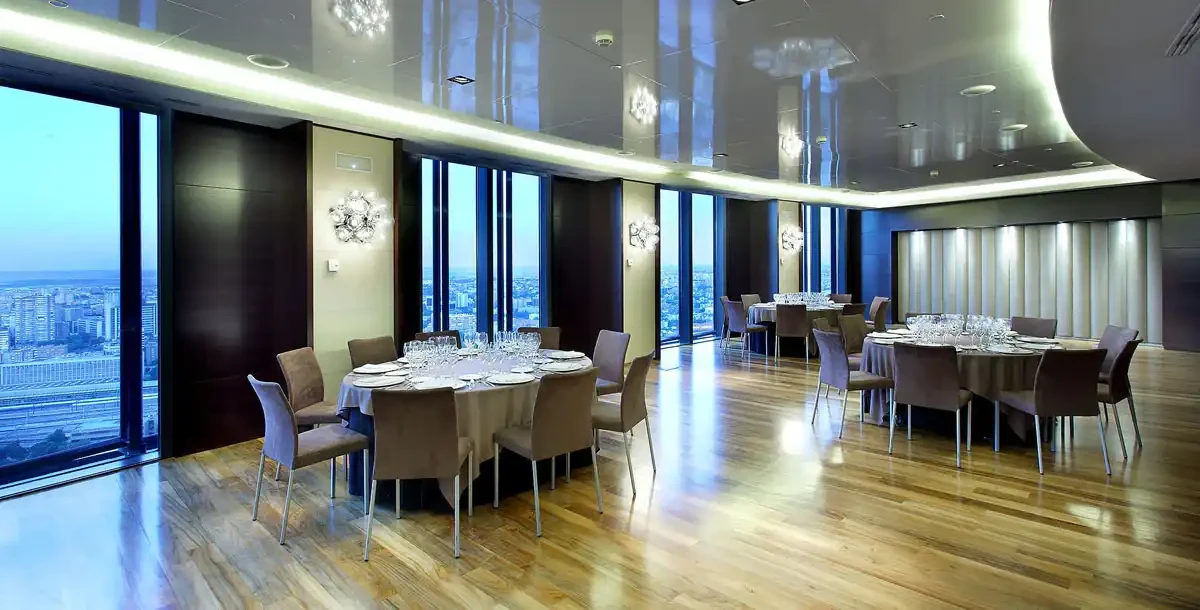 El Eurostars Madrid Tower es una opción de primer nivel para la celebración de eventos corporativos y privados gracias a su combinación de modernidad, flexibilidad y entorno imponente. Situado en una de las torres de mayor altura de Madrid, en la Cuatro Torres Business Area, ofrece una visión panorámica privilegiada de la ciudad, lo que lo convierte en un escenario singular para reuniones, conferencias, lanzamientos o celebraciones.