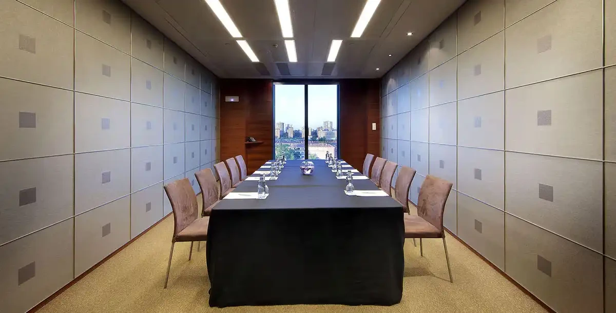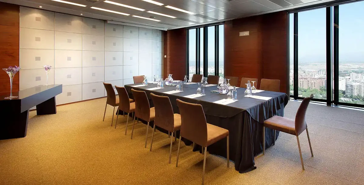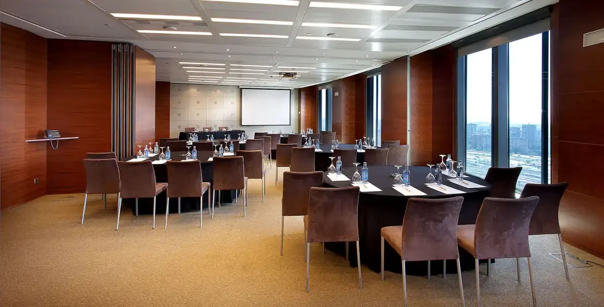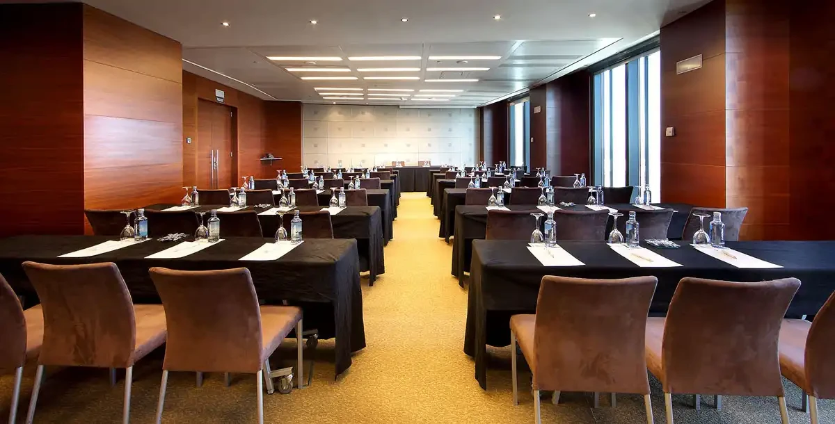 Para reuniones más pequeñas o de carácter ejecutivo, el hotel dispone de salas de dimensiones reducidas (desde unos 30 m²), así como de salones intermedios como Salón Seúl o Salón Los Ángeles ubicado en una planta elevada para disfrutar de las vistas. Estas salas resultan idóneas para conferencias íntimas, lunchs de empresa, desayunos de trabajo o presentaciones exclusivas. Todas las estancias están equipadas con tecnología audiovisual de última generación, conexión Wi-Fi gratuita y posibilidad de disponer de servicios adicionales como catering, coffee-breaks, cenas de gala o banquetes gracias a la cocina propia del hotel.