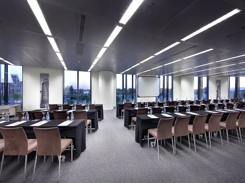 Con más de 2.500 m² distribuidos en hasta 22 salas modulares, el hotel se adapta a eventos de diversa escala y naturaleza. Entre sus espacios destaca el salón principal, Salón Gran Barcelona, un espacio diáfano de 1.500 m² con capacidad para hasta 1.300 invitados, ideal para grandes presentaciones, congresos, convenciones o celebraciones de alto impacto. Todas las salas son insonorizadas, con iluminación natural y diseñadas para ofrecer comodidad óptima. Además, muchas cuentan con vistas a la ciudad, lo que aporta un plus estético especialmente valorado en eventos sociales o corporativos.