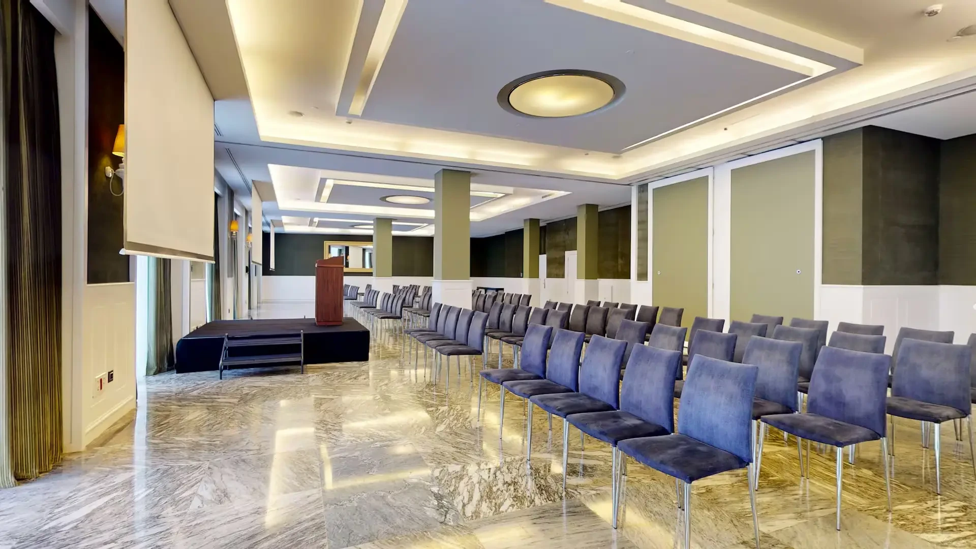 Para eventos de empresa, el hotel ofrece un entorno que transmite prestigio desde el primer momento. Su Salón La Galería, con más de 300 m² y 3,3 metros de altura, es un espacio diáfano y versátil que se adapta tanto a convenciones y presentaciones de producto como a cenas de gala y cócteles corporativos. Puede configurarse como un único salón o dividirse en tres espacios independientes (Galería I, II y III), lo que permite organizar desde reuniones ejecutivas reducidas hasta encuentros de más de 250 personas. Todos los salones cuentan con acceso para personas con movilidad reducida, climatización, wifi, equipos de proyección, sonido y pantalla.