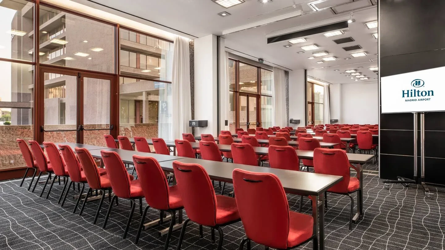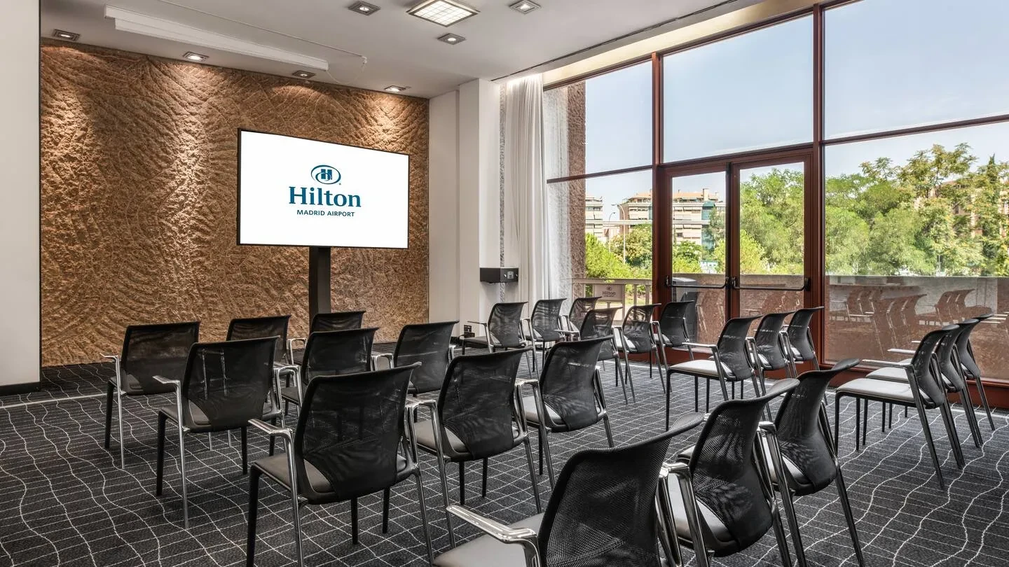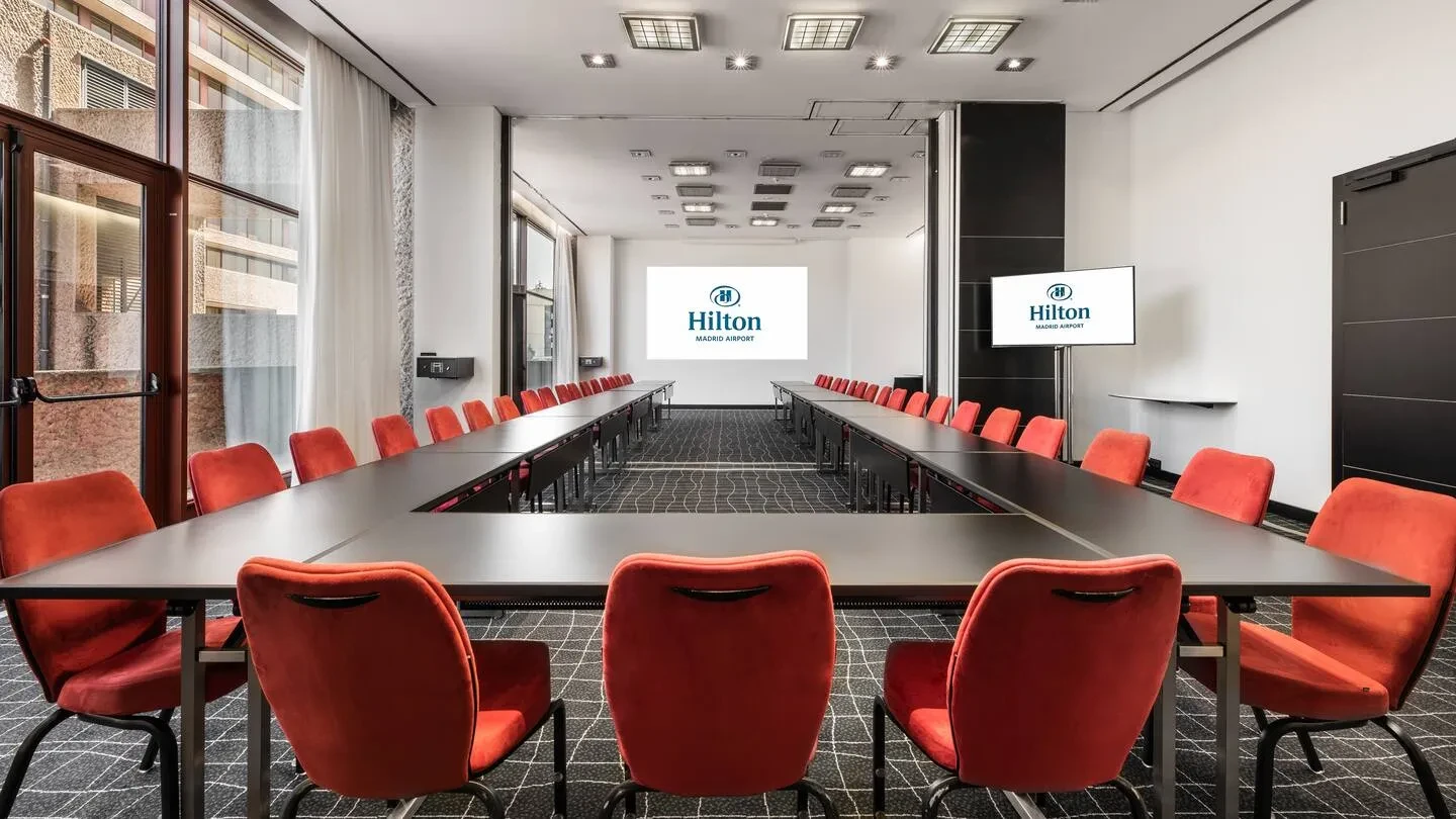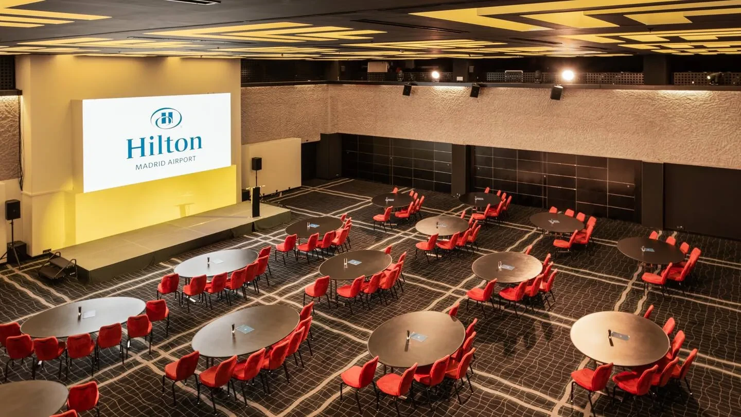 Con una superficie de más de 1.700 metros cuadrados destinados a reuniones y eventos, y hasta 15 salas modulables, Hilton Madrid Airport ofrece un marco versátil para acoger desde grandes convenciones hasta workshops más reducidos. La sala Isabela Ballroom puede acoger hasta 500 participantes en formato de cóctel o teatro, mientras que otras salas más pequeñas permiten sesiones de dirección, brainstorming o agrupaciones en formatos ‘U’ o escuela. Todas las salas disponen de luz natural, conectividad Wi-Fi de alta velocidad, tecnología audiovisual puntera y accesos logísticos optimizados (incluido aparcamiento privado con 100 plazas y entrada directa desde la calle), lo que simplifica notablemente la producción del evento.
