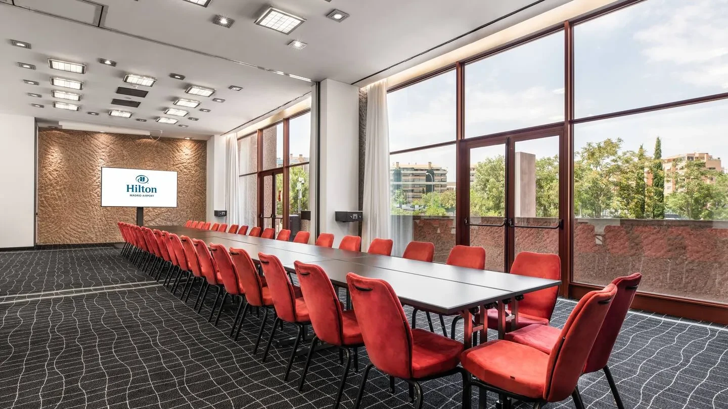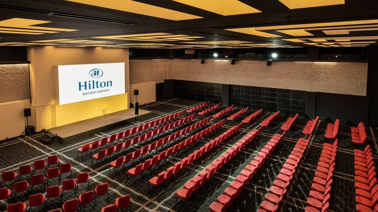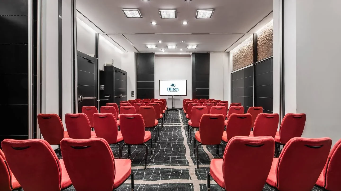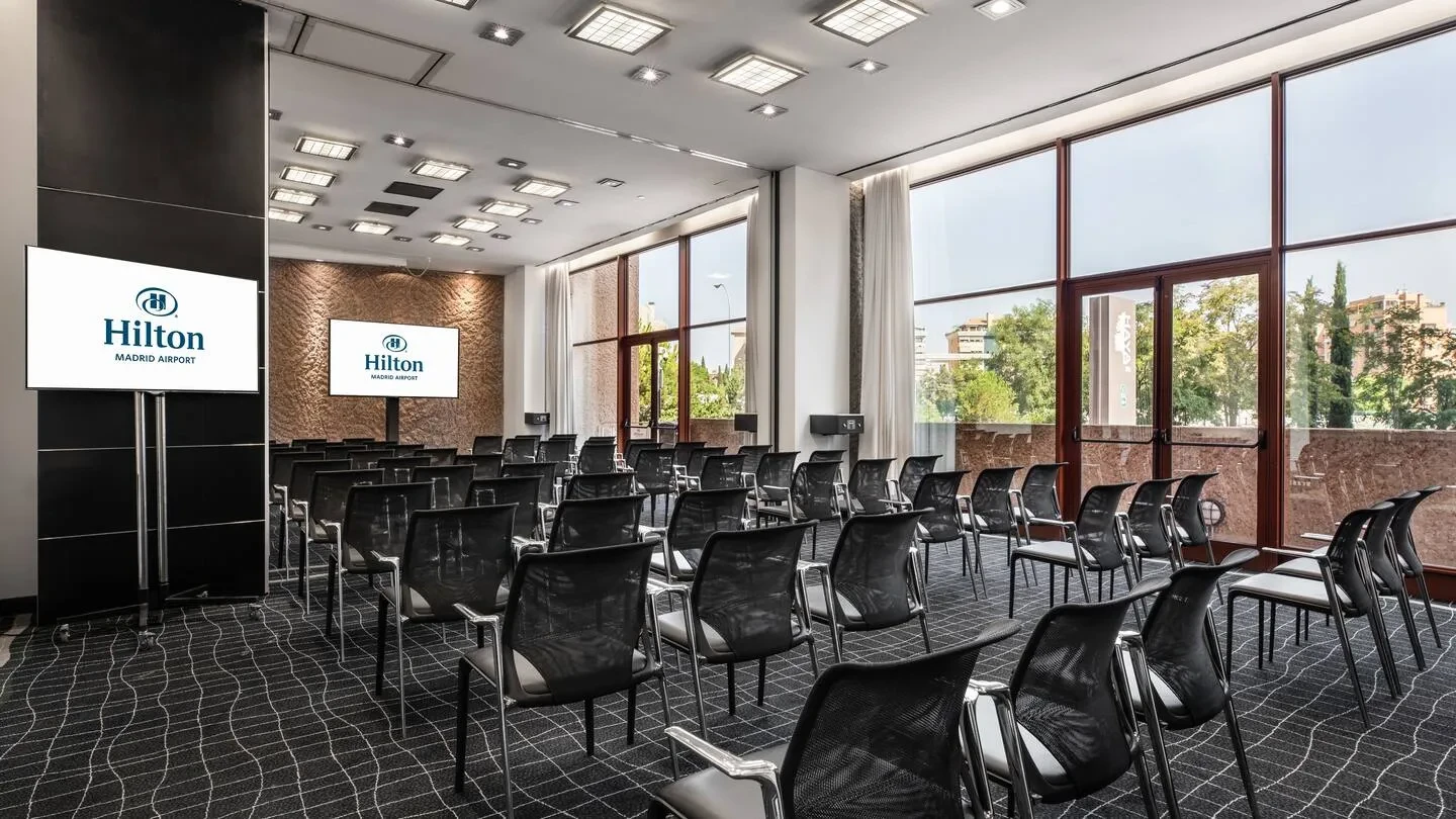 Con una superficie de más de 1.700 metros cuadrados destinados a reuniones y eventos, y hasta 15 salas modulables, Hilton Madrid Airport ofrece un marco versátil para acoger desde grandes convenciones hasta workshops más reducidos. La sala Isabela Ballroom puede acoger hasta 500 participantes en formato de cóctel o teatro, mientras que otras salas más pequeñas permiten sesiones de dirección, brainstorming o agrupaciones en formatos ‘U’ o escuela. Todas las salas disponen de luz natural, conectividad Wi-Fi de alta velocidad, tecnología audiovisual puntera y accesos logísticos optimizados (incluido aparcamiento privado con 100 plazas y entrada directa desde la calle), lo que simplifica notablemente la producción del evento.