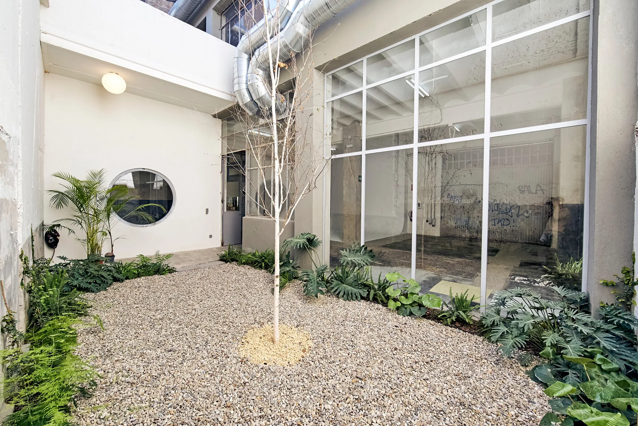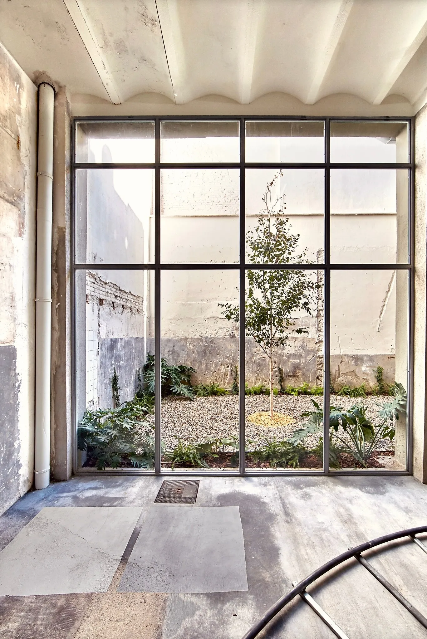 This factory from the 70's originally manufactured small metalic accesories for the fashion industry and was unused for over 20 years until 2019 when it was rescued and transformed honoring its history and the building's time scars so its industrial heritage remains mostly intact.