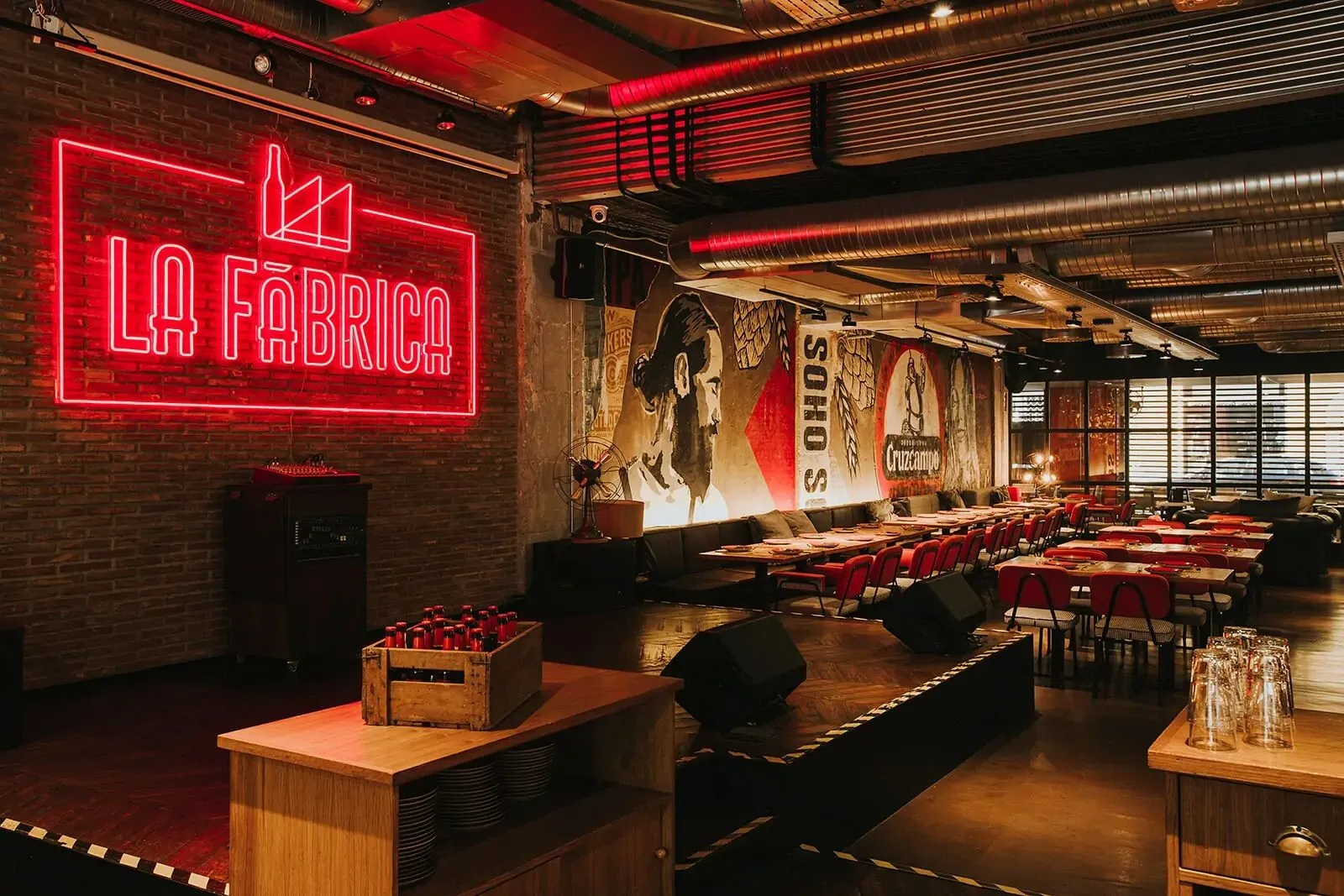 El espacio cuenta con áreas versátiles que se adaptan a cualquier formato: desde ambientes íntimos y acogedores hasta salones amplios y luminosos, perfectos para recibir a grandes grupos. Además, su programación cultural – que abarca desde exposiciones de arte urbano hasta actuaciones en vivo – refuerza el carácter único de La Fábrica, haciendo que cada evento no solo se celebre, sino que se viva intensamente.