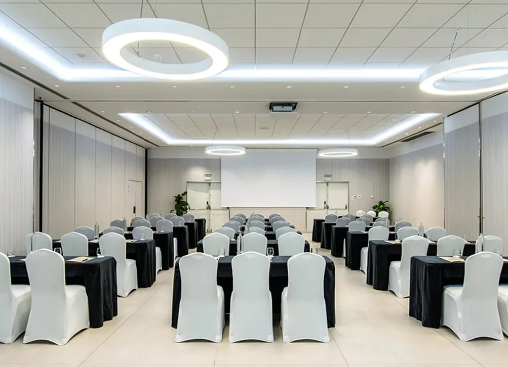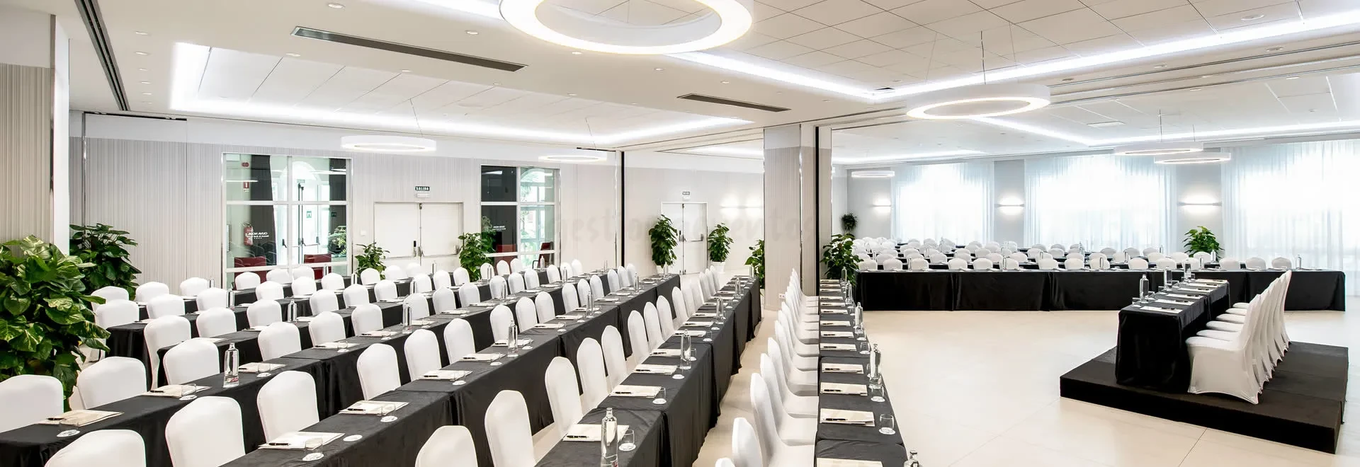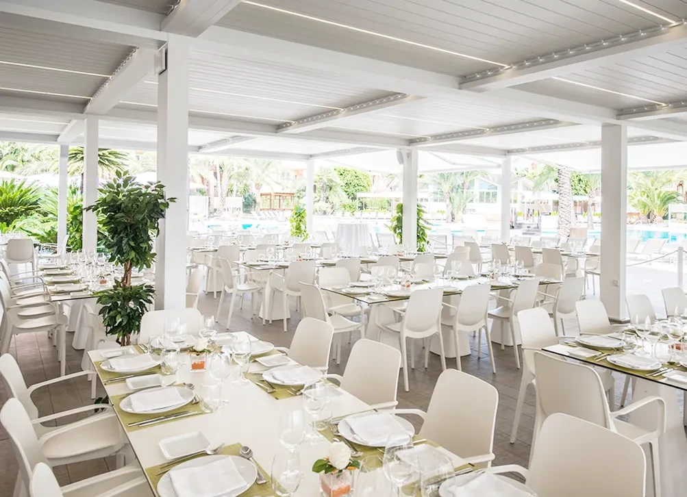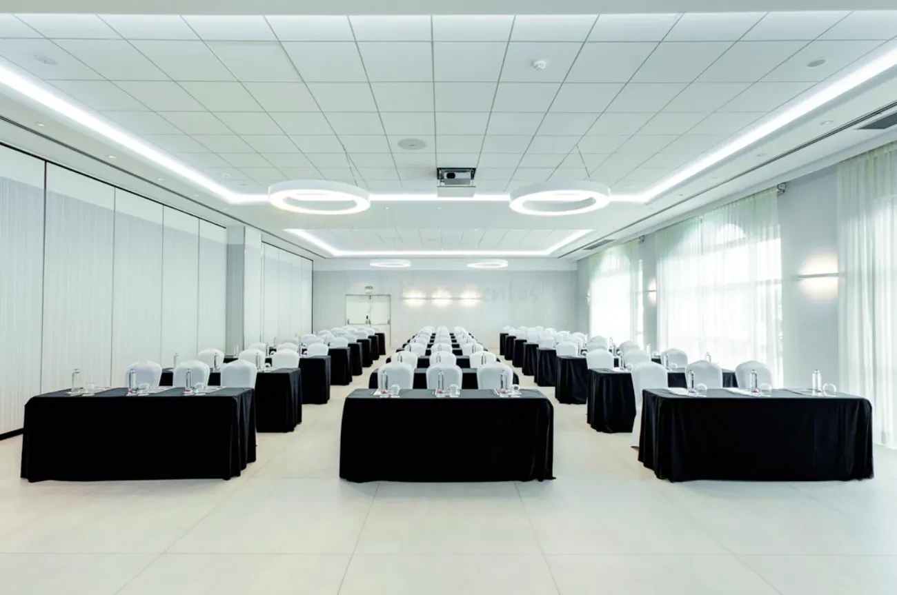 El hotel cuenta con salas equipadas con tecnología audiovisual, conectividad Wi-Fi de alta velocidad y capacidad para adaptarse mediante paneles divisores a diferentes formatos y capacidades. El resort ofrece espacios exteriores muy versátiles: una azotea premium con vistas al Mediterráneo, terrazas junto a la piscina, y zonas de jardín que permiten celebrar cócteles, cenas al aire libre o eventos de team-building. También dispone de un centro ecuestre y un campo de golf diseñado por Severiano Ballesteros, que permite complementar la parte formal del evento con actividades de incentivo y deporte para los participantes.
